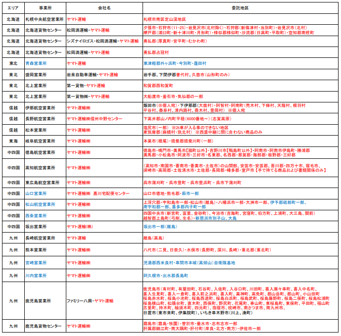 上記該当地区につきましては、東日本大震災の影響地域になり配送を停止しており、最寄り営業所止めでのご対応となります。